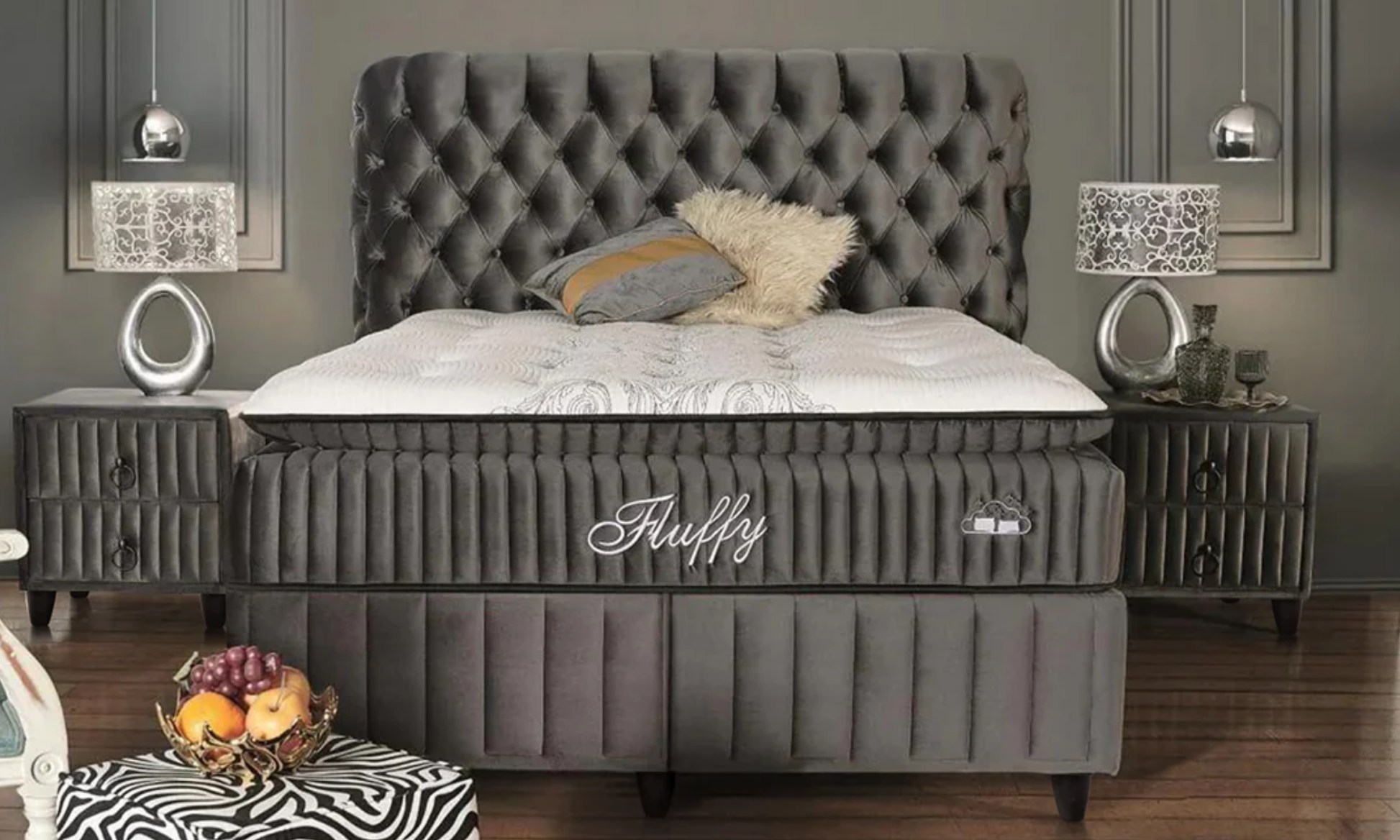 Ensemble de lit BSS FLUFFY avec sommier et tête de lit | Matelas H3